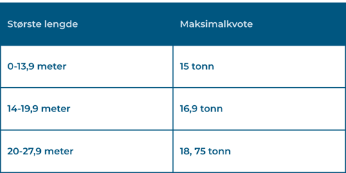 Maksimalkvotene som i 2017-2023 var 20/22,5/25 tonn, ble i 2024 satt til: