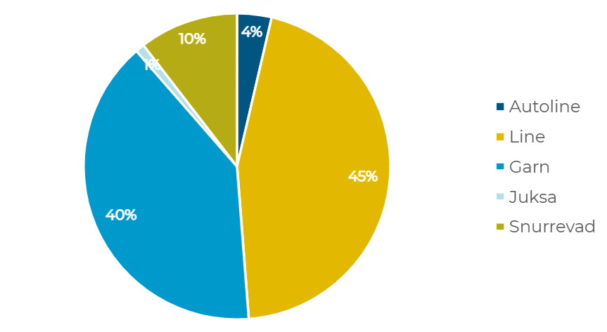Av tabellen framgår at størst andel av totalen er tatt av båtene i størrelsesgruppen u/14 meter, nærmere bestemt 61 %. Andelen tatt i denne gruppen økte fra 54 % året før. På samme vis som året før var det line/autoline som dominerte med størst andel av kvantumet i den minste størrelsesgruppen. Garn var dominerende i gruppen 14-20 meter, mens snurrevad stod for det meste av leveransene i gruppen 20-28 meter. Totalt for alle 3 størrelsesgruppene var 2.370 tonn (49 %) tatt på line/autoline, 1.936 tonn (40 %) på garn og 507 tonn (11 %) på snurrevad. Som en følge av at økt andel i år er fisket av båter u/14 meter der det også er størst andel linefangst, er andelen tatt på line/autoline totalt også opp, fra 41 % året før, mens garnandelen er redusert fra 45 % året før.