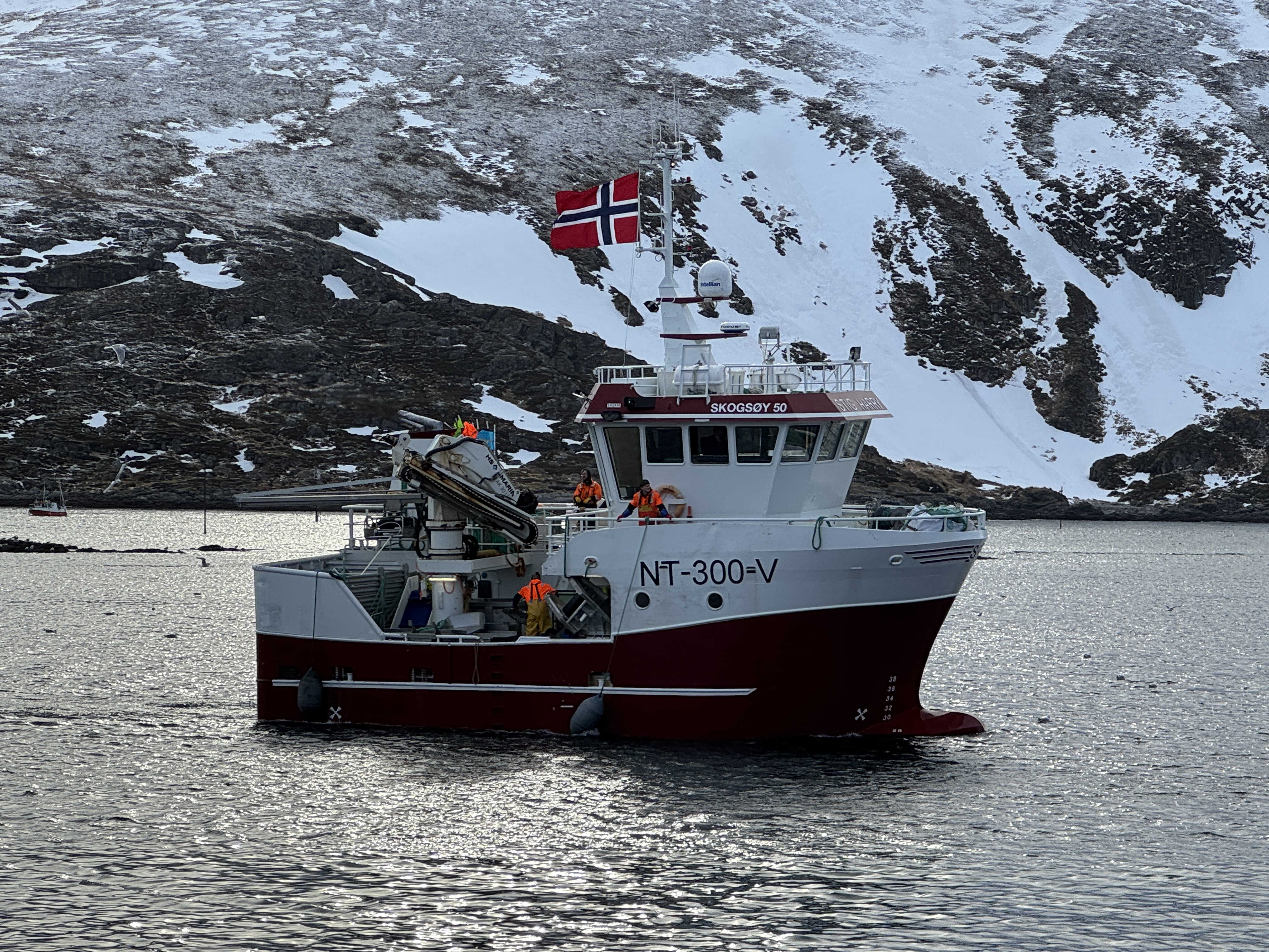 Stig Harry på vei inn til levering. Ferdig med kvota og det norske flagget i toppen av masta.