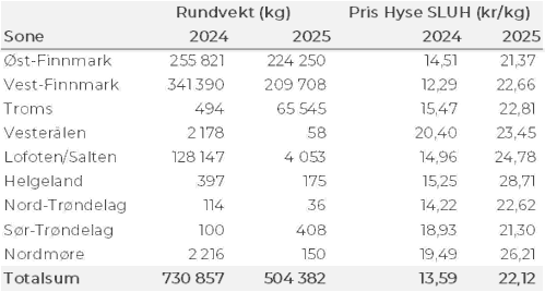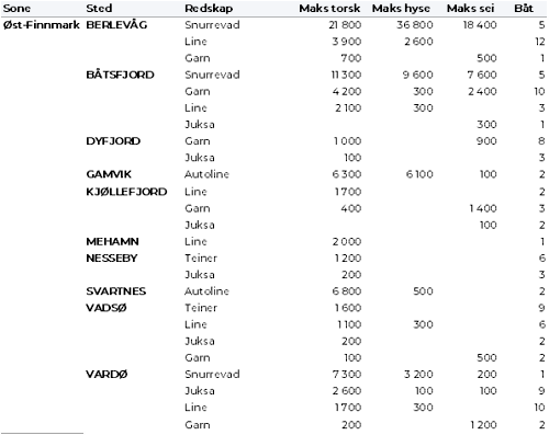 Kvanta fordelt per leveringssone fremgår av tabell 2. 93 % av kvantumet var levert i Finnmark.