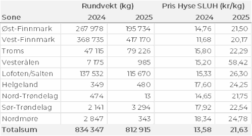 Kvanta fordelt per leveringssone fremgår av tabell 2. 84 % av kvantumet var levert i Finnmark.