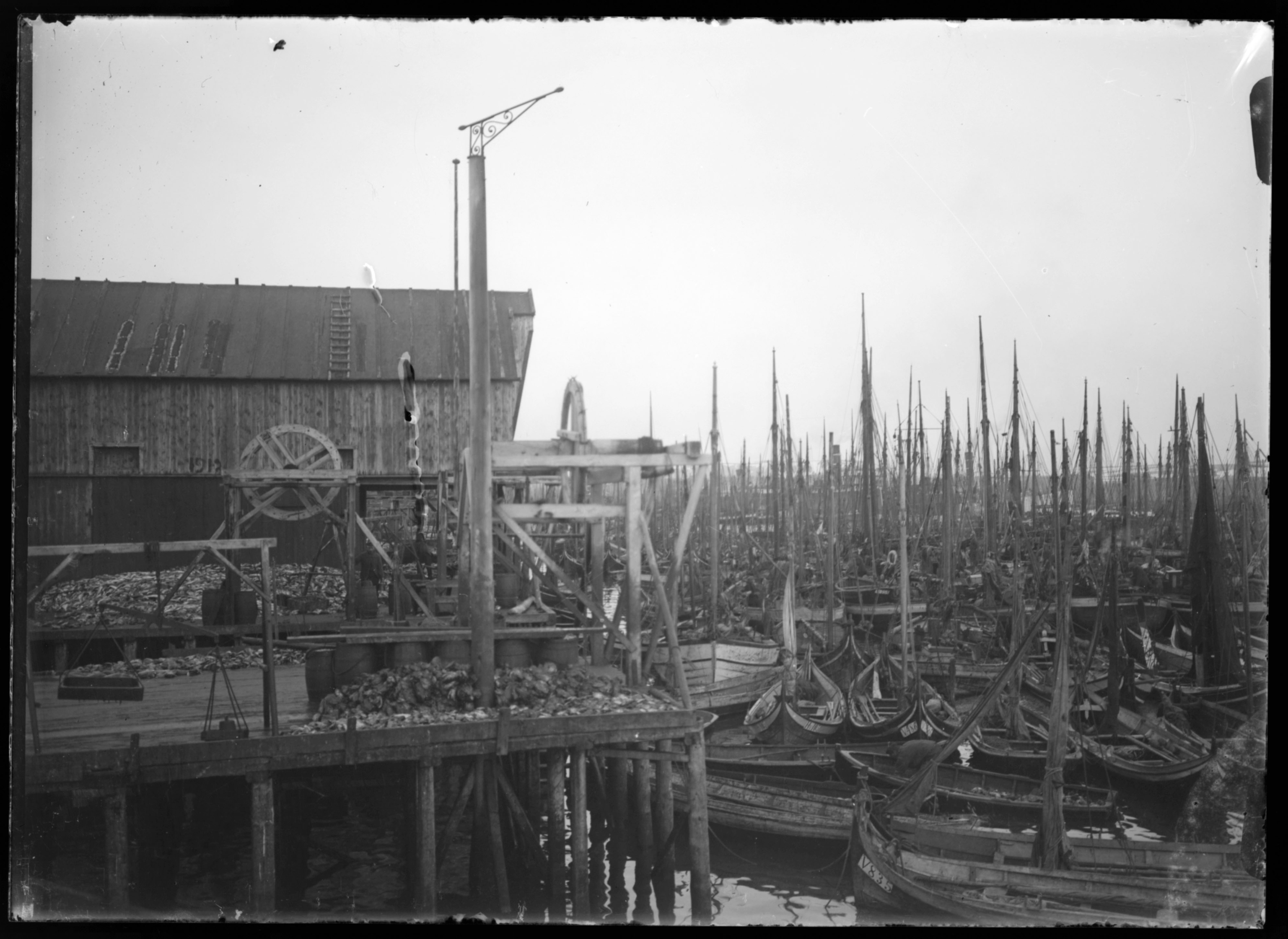 Fiskebåter tett i tett ved Brodtkorb-kaia, Nordre våg i Vardø (1910-1920).