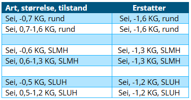 Endringen i vektklassene medfører at rundskriv og avtaleverk for dynamisk minstepris for sei allerede er oppdatert.
