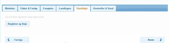 Velg registrer ny linje og legg inn opplysninger om fangsten.