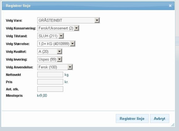 Dersom du har flere arter, velg Registrer ny linje og gjenta.