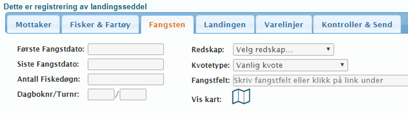 Fyll inn nødvendige opplysninger om fangsten og vær særlig nøye med datoer: