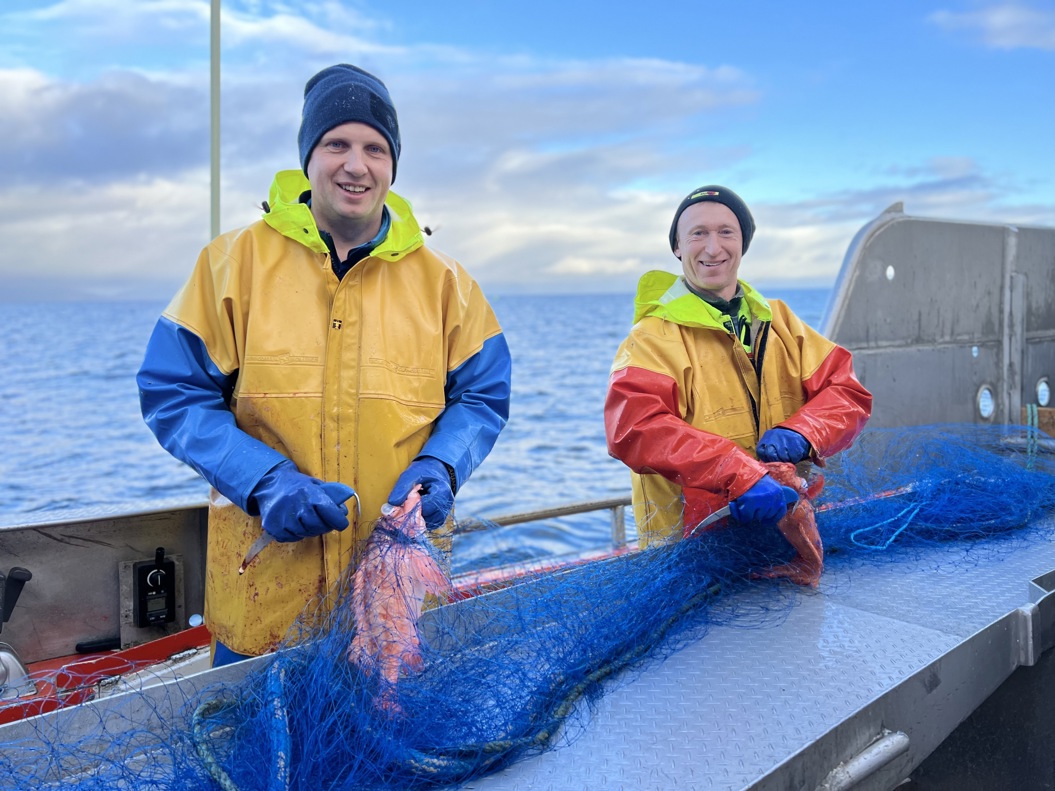 Når Thomas (t.v) og Ørjan (t.h) fisker har de aldri full båt og begrenser redskapsmengden slik at to mann klarer å ta vare på fisken. Foto: Norges Råfisklag