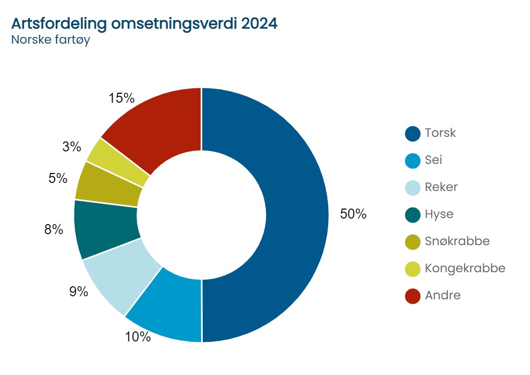 Det ble omsatt villfanget fisk, skalldyr og annen sjømat for 15,9 milliarder kroner i Norges Råfisklag i 2024. Norske fiskere sto for vel 13,3 milliarder av total verdi.