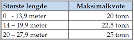 I og med at dette er et åpent fiskeri, er kvotene pr fartøy utdelt som maksimalkvoter. Maksimalkvotene er de samme som i 2017-2021: