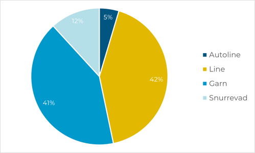 Båter som fisket blåkveite med redskapene line og autoline dominerte med størst andel av kvantumet i den minste størrelsesgruppen, båter som fisket med garn var dominerende i gruppen 14-20 meter, mens båter som fisket blåkveite med snurrevad stod for det meste av leveransene i gruppen 20-28 meter.