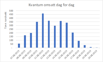 I grafene nederst på siden, ser man leveranser fordelt på dag i første og andre periode, der været spilte en betydelig rolle for fisketakten.