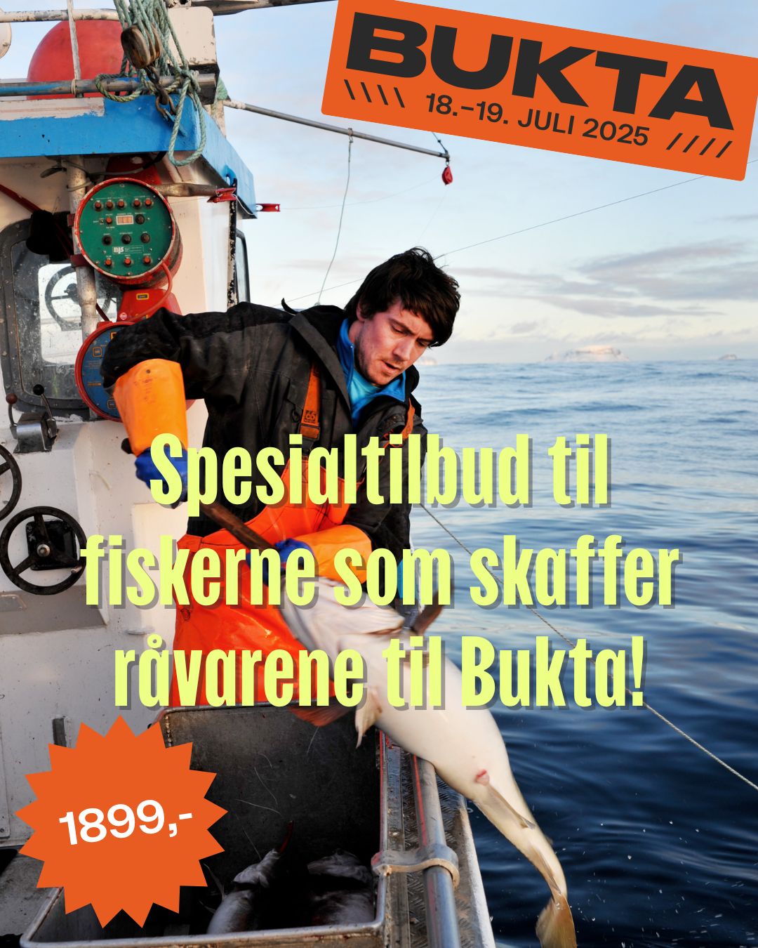 Buktafestivalen går av stabelen i Tromsø 18.-19. juli og som samarbeidspartner siden starten kan vi i år tilby spesialpris på festivalpass til yrkesfiskerne som skaffer råvarer til festivalen.