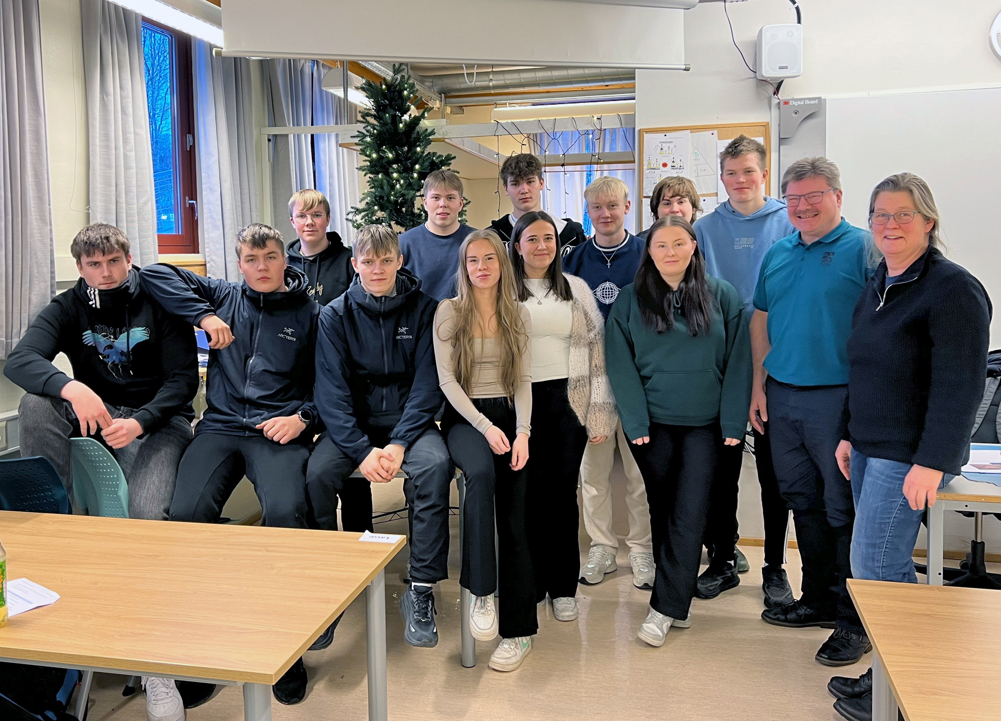 Råfisklagets fagpersoner på kvalitetsarbeid har i år undervist over 100 elever ved seks ulike videregående skoler med blå linje. Er din skole interessert i kvalitetskurs? Les mer her. Foto: elever på Senja videregående skole sammen med Råfisklagets Arne Magne Andersen og Jonette Braathen.