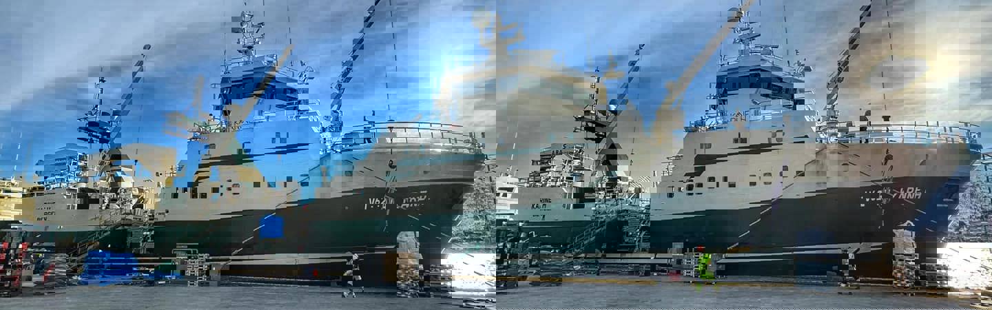Samtidig som at den rendyrkede reketråleren "Karine H" losser årets første fangst av villfangede dypvannreker fra Barentshavet, ble leveranser av torsk levert av kystfiskeflåten kraftig redusert forrige uke. Litt over 4.000 tonn ble levert av den betydningsfulle fisken, hvilket er under halvparten av fangstene de foregående ukene. Dels ble båtene hindret fra å fiske grunnet dårlig vær, men mange er også ferdig med årets tildelte torskekvote og går nå over til fiske etter andre arter.