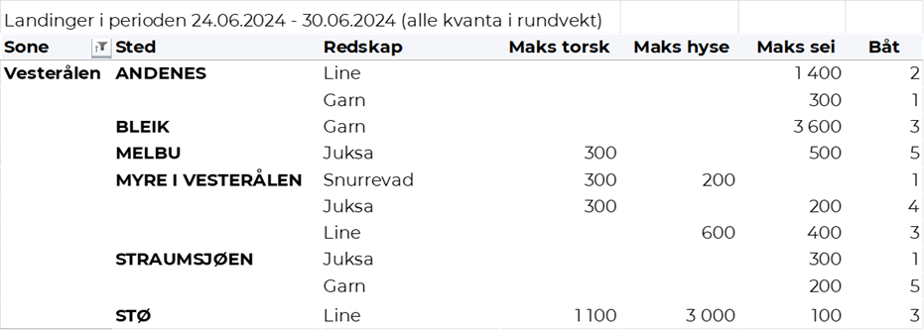 Fra omsetninga fra perioden i uke 26 i 2024 har vi følgende oversikt: