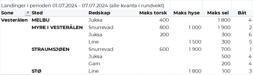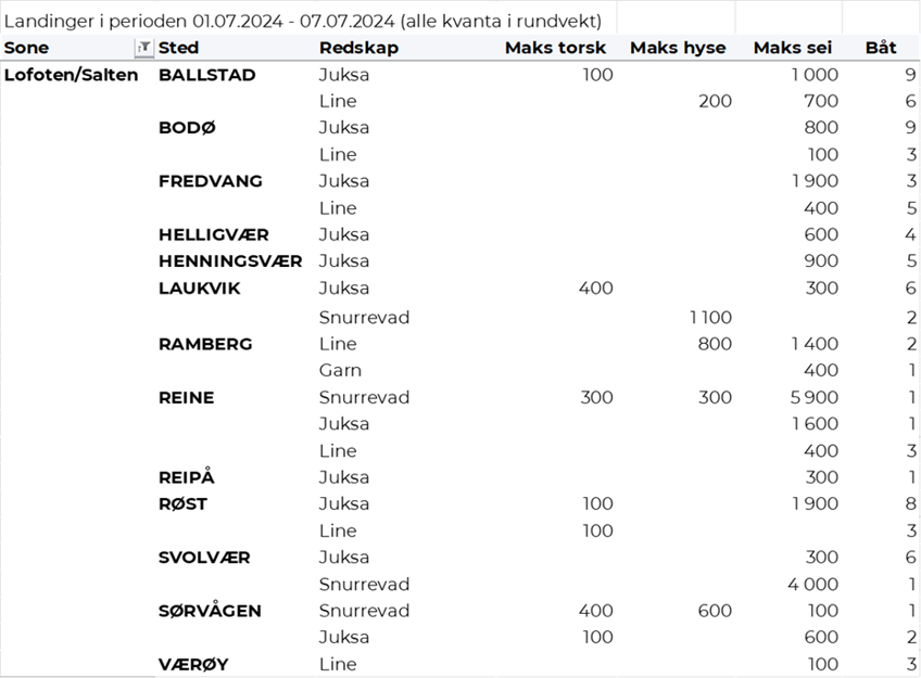 Fra omsetninga fra perioden i uke 27 i 2024 har vi følgende oversikt: