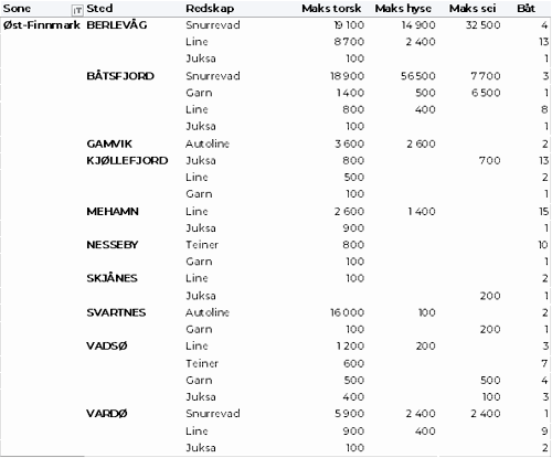 Kvanta fordelt per leveringssone fremgår av tabell 2. 84 % av kvantumet var levert i Finnmark.