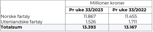 Omsetning uke 33, 2023