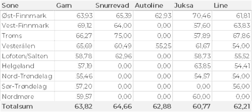 Tabell 2 og 3 viser fordelingen av landingene av fersk torsk per leveringssone og redskap (unntatt trål), med tilhørende snittpriser. De to tabellene er basert på omsetning av kvalitet A og ekstra, der alle leveringstilstander inngår, men der snittprisene er omregnet til sløyd uten hode-priser, eksklusivt restråstoff.