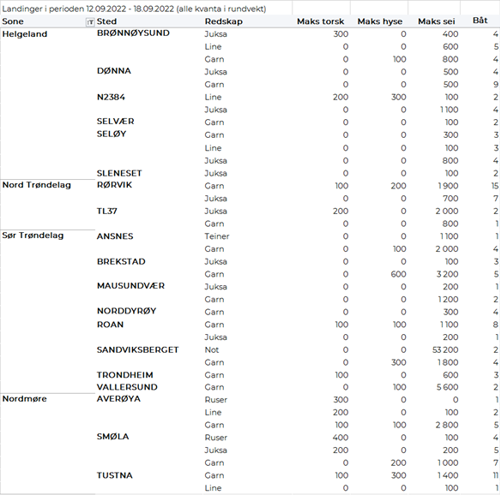 Omsetningsdata i denne rapporten skriver seg først og fremst fra uke 37. Alle kvanta i rapporten er oppgitt i tonn rundvekt, hvis ikke annet er presisert, og verdi i 1.000 kroner, evt. millioner kroner.