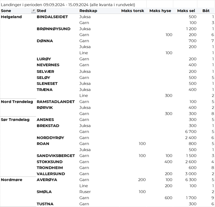 Omsetningsdata i denne rapporten skriver seg først og fremst fra uke 37. Alle kvanta i rapporten er oppgitt i tonn rundvekt, hvis ikke annet er presisert, og verdi i 1.000 kroner, evt. millioner kroner.