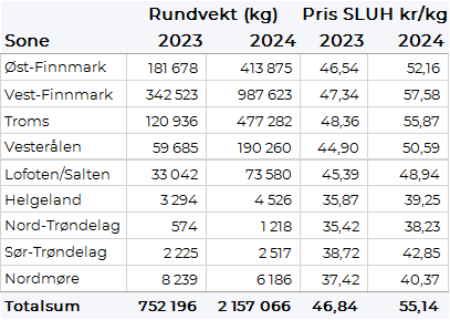 Tilsvarende for uke 4 i fjor som var ei uværsuke var omsetningen 230 millioner kroner, av det var 13 millioner kroner etter landinger fra utenlandske båter. Omsetningen for norske båter på 217 millioner kroner var fordelt med 82 på fersk og 135 på fryst råstoff.