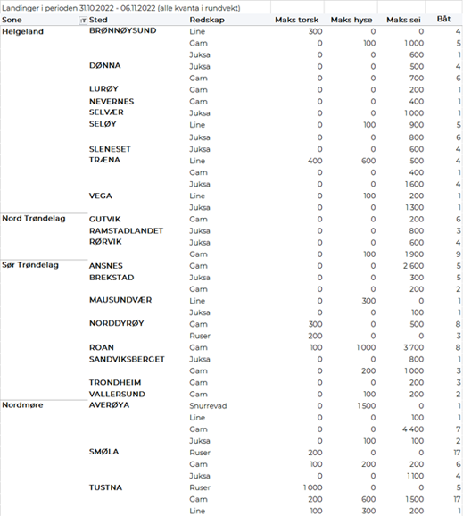 Omsetningsdata i denne rapporten skriver seg først og fremst fra uke 44. Alle kvanta i rapporten er oppgitt i tonn rundvekt, hvis ikke annet er presisert, og verdi i 1.000 kroner, evt. millioner kroner.