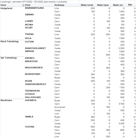 Omsetningsdata i denne rapporten skriver seg først og fremst fra uke 45. Alle kvanta i rapporten er oppgitt i tonn rundvekt, hvis ikke annet er presisert, og verdi i 1.000 kroner, evt. millioner kroner.