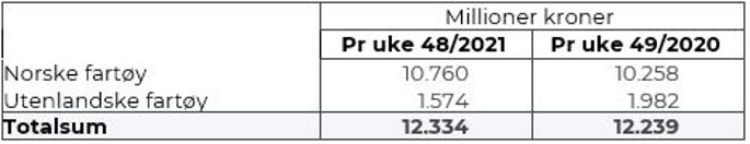 Tilsvarende uke i fjor, som var uke 49 (30. november – 6. desember 2020) var omsetninga 214 millioner kroner, der 25 millioner kroner gjaldt landing fra utenlandske båter. Omsetningen for norske båter var da på 189 millioner kroner fordelt med 49 på fersk og 140 på fryst.