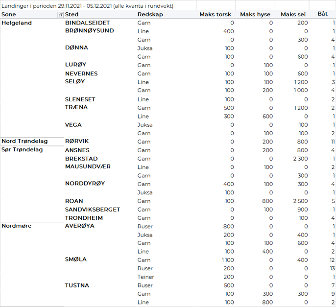 Omsetningsdata i denne rapporten skriver seg først og fremst fra uke 48. Alle kvanta i rapporten er oppgitt i tonn rundvekt, hvis ikke annet er presisert, og verdi i 1.000 kroner, evt. millioner kroner.