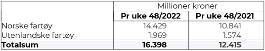Tabell 2: Omsetning for norske båter i uke 48, 2022, fordelt pr fersk/fryst og pr fiskeslag.