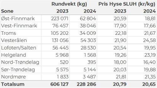 Tilsvarende for uke 48 i fjor, var omsetningen 214 millioner kroner, og av det var 11 millioner kroner etter leveranser fra utenlandske båter. Omsetningen for norske båter utgjorde 203 millioner kroner, fordelt med 70 på fersk og 133 på fryst råstoff.