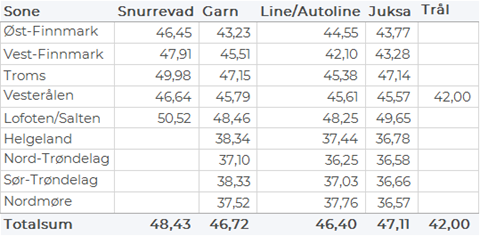 Se gjennomsnittspriser for fersk fisk pr. uke 9 og hittil i år
