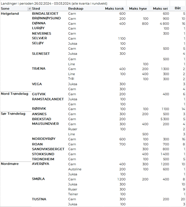 Omsetningsdata i denne rapporten skriver seg først og fremst fra uke 9. Alle kvanta i rapporten er oppgitt i tonn rundvekt, hvis ikke annet er presisert, og verdi i 1.000 kroner, evt. millioner kroner.