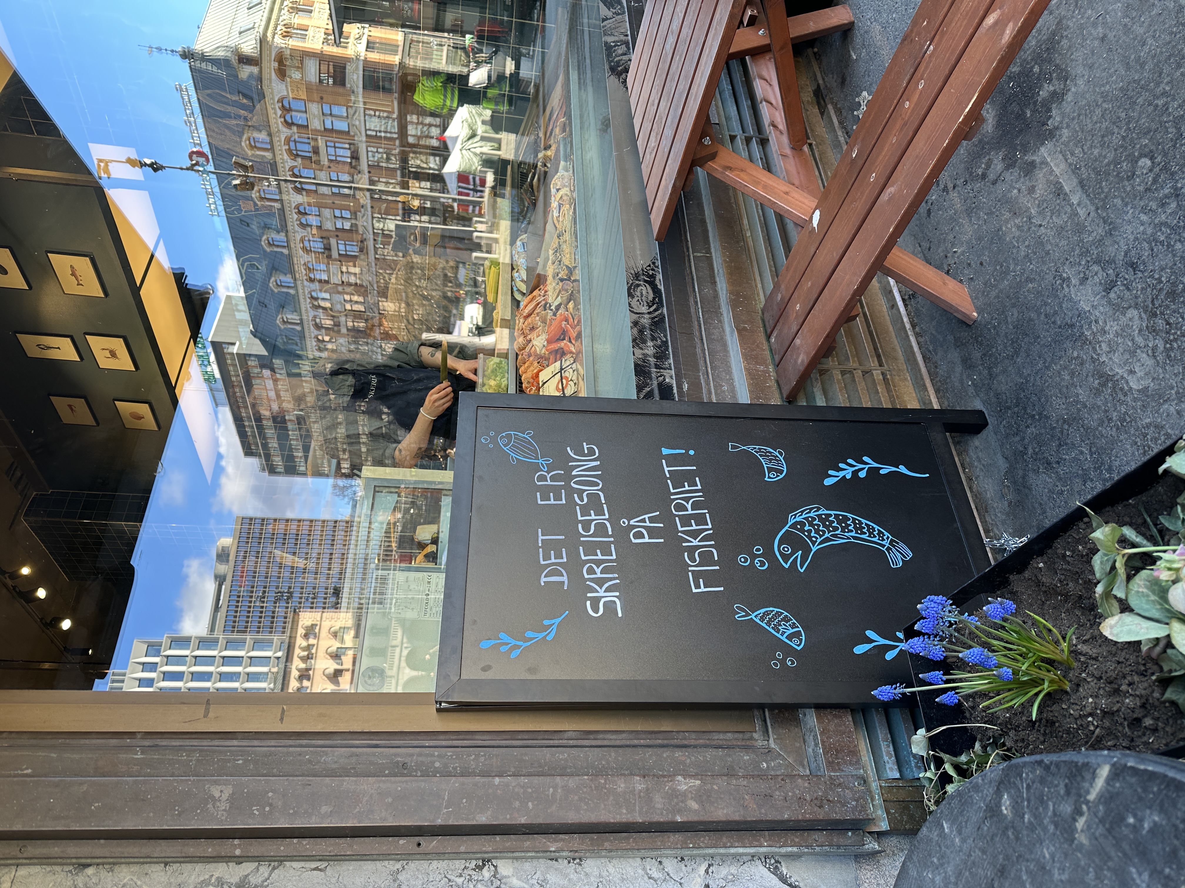 Fiskeriet ligger på Youngstorget og er kombinert fiskedisk og restaurant. De bruker kun kvalitetsmerket Skrei.