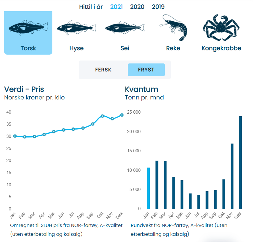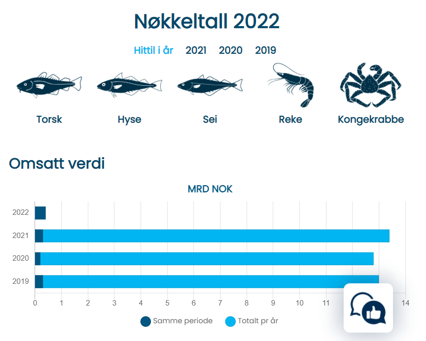 Råfisklagets nye statistikk-sider gir umiddelbar innsikt i tall og data fra fiskeriene. Dette gjelder alt fra hvor mye fisk og skalldyr som er levert og solgt til hvilke fiskeredskap som er brukt, og du kan følge utviklingen fra time til time.