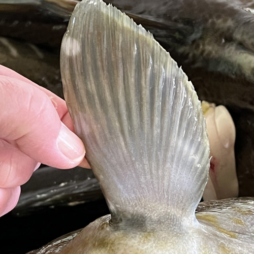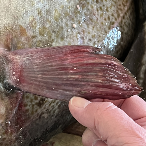 Bilde: Finnene gir en pekepinn på om fisken er tømt for blod, den til venstre er utblødd mens den til høyre har blodutredelser og er mangelfullt utblødd.