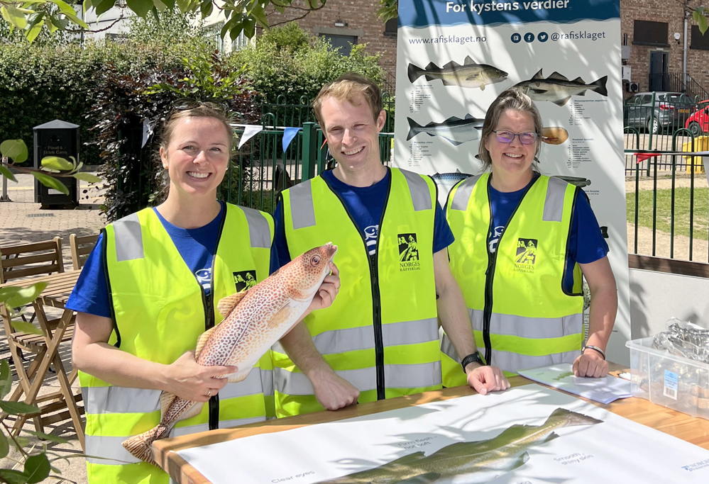 Bilde: Råfisklagets representanter på "Sea Change" (fra venstre) Synne Guldbrandsen, Audun Reiertsen og Jonette Braathen.
