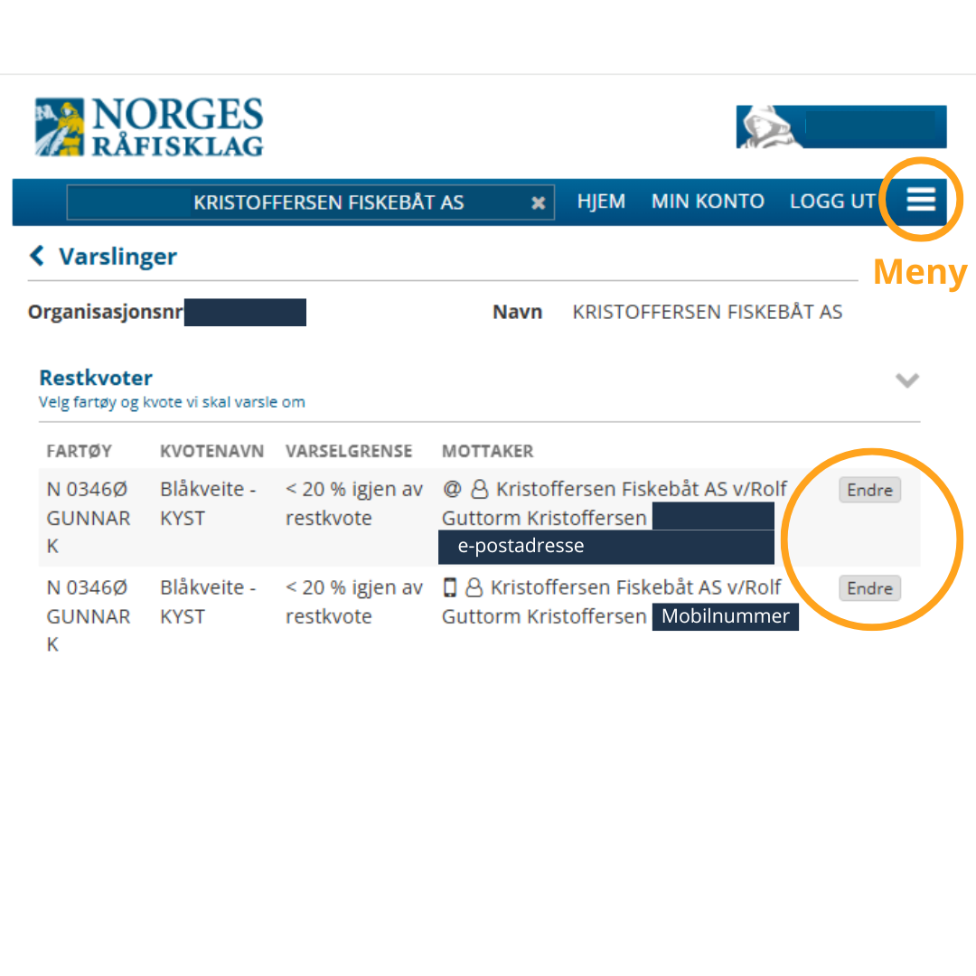Endre/legge til mottaker av varsel, for eksempel leieskipper.