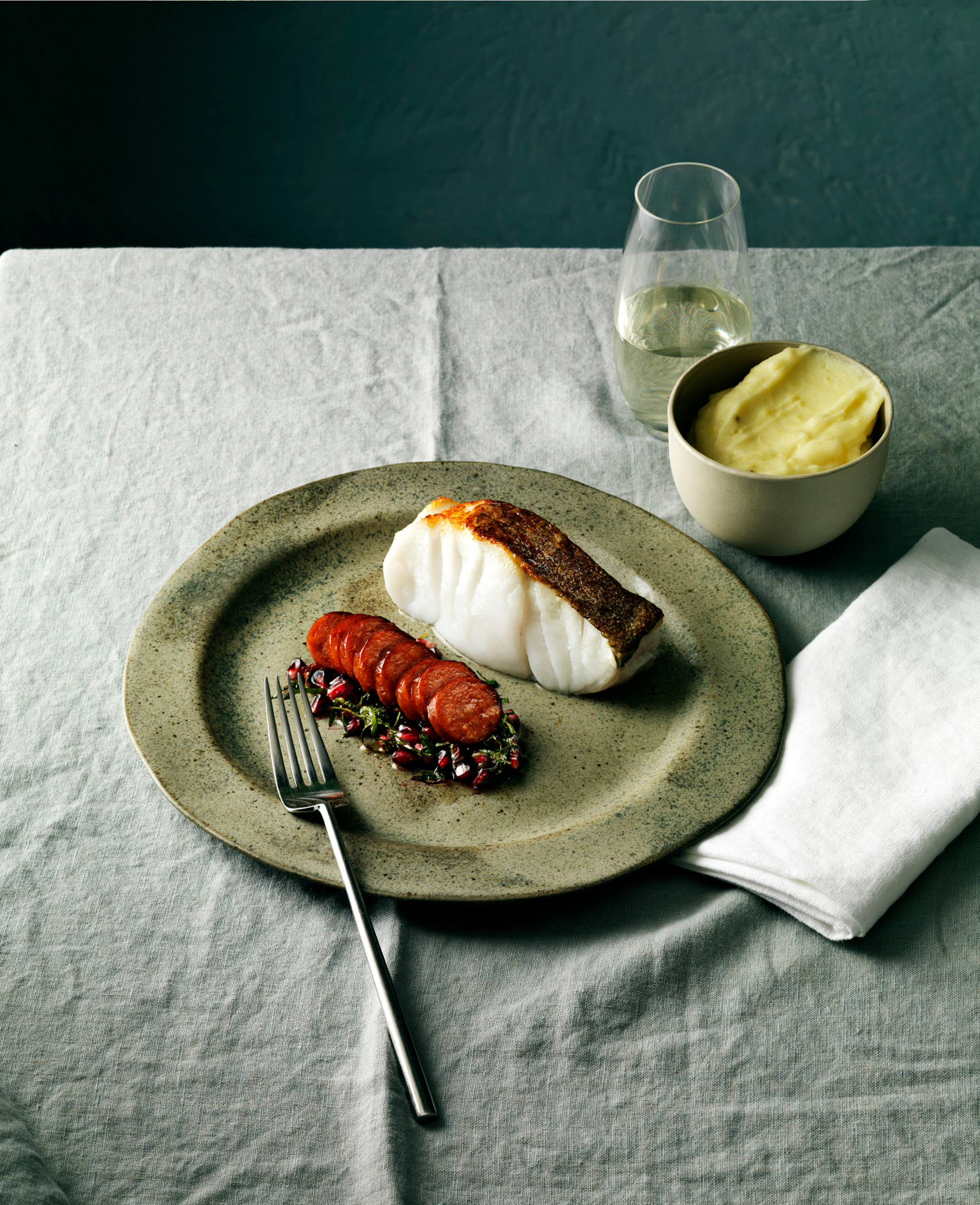 Skrei med choritzo, foto Norges sjømatråd.