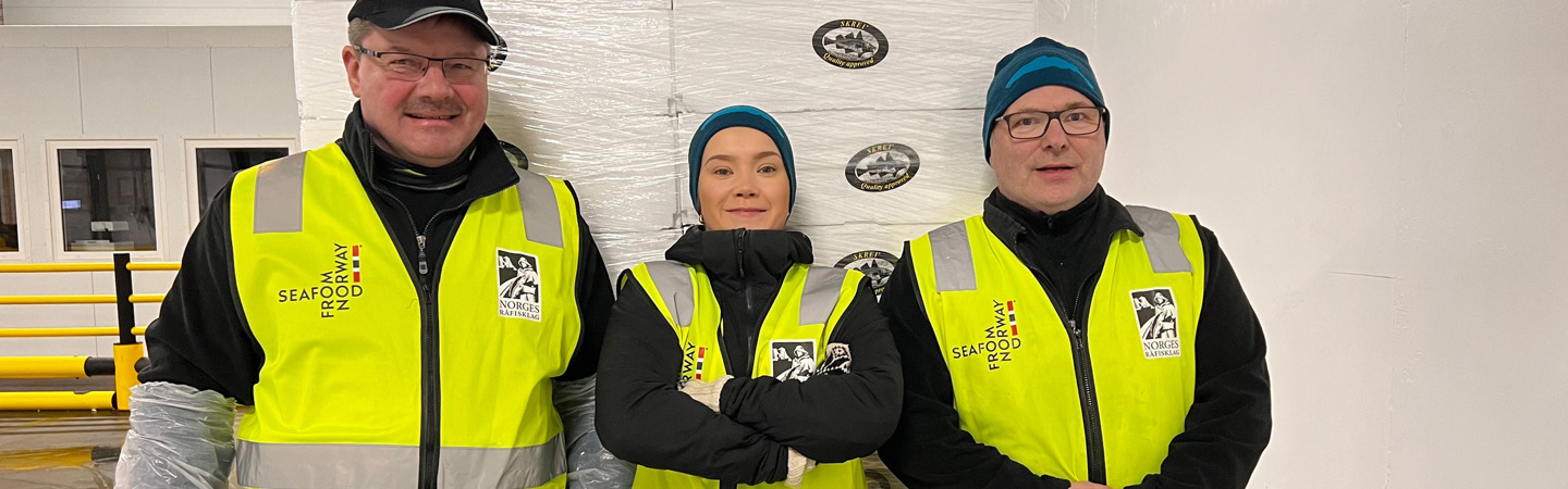 Det er derfor naturlig at det er på omlastingsterminaler i Danmark at Skreipatruljen utfører de fleste kontrollene av kvalitetsmerket Skrei. Det er også kontrollene som utføres nærmest mulig sluttmarkedet som gir det beste bildet på om skreien holder det kvalitetsmerket lover.