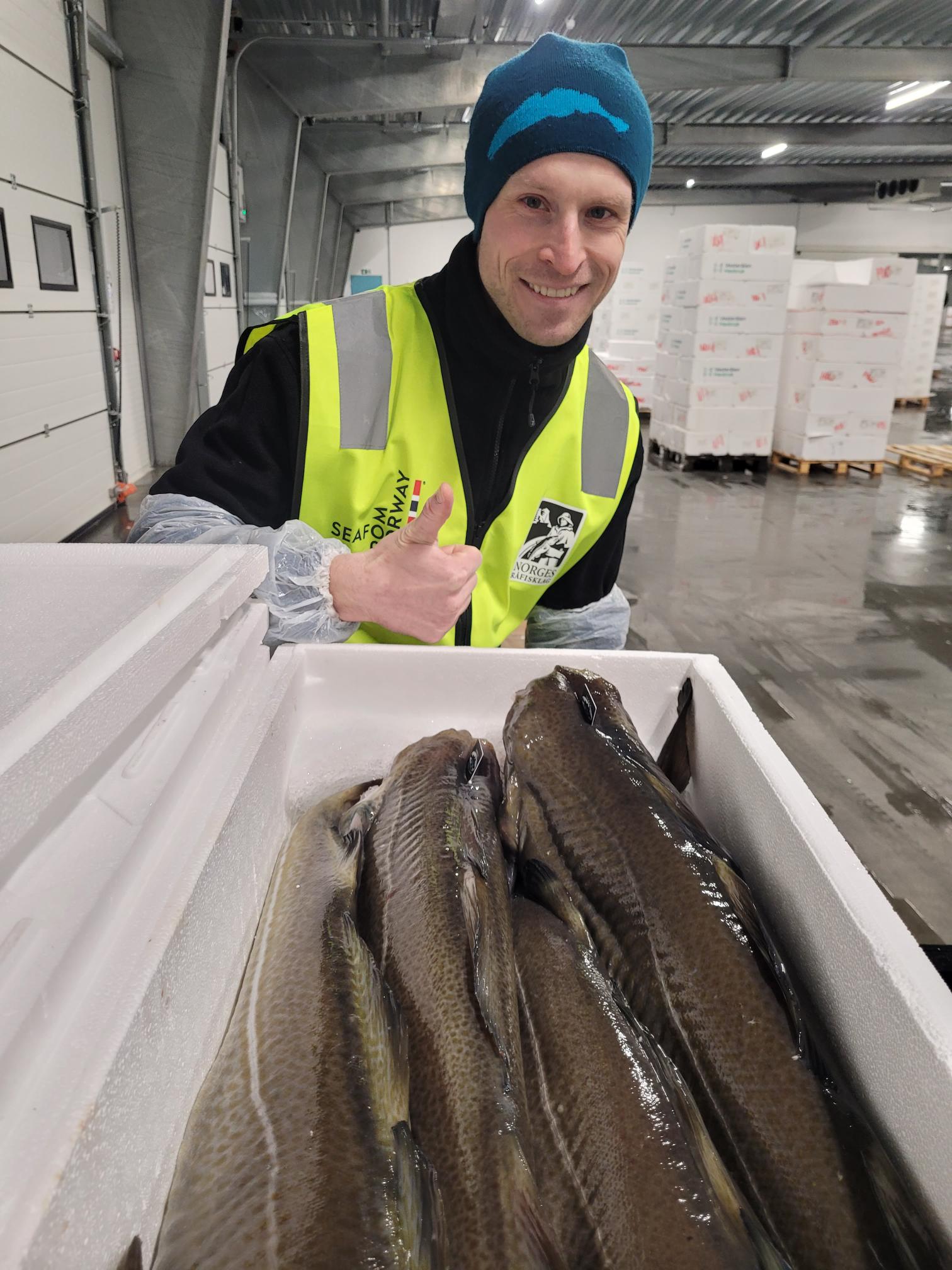 Foto ovenfor: Skreipatruljens Audun Reiertsen gir tommel opp for skreien som var helt perfekt!