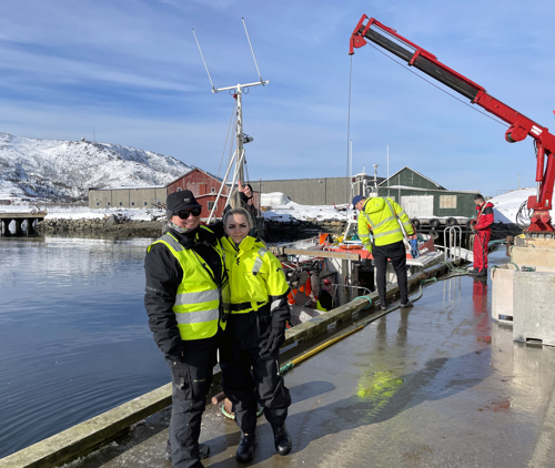 Bilder: Under lærlingetiden var Yvonne med Råfisklagets fagfolk på kontroll av kvalitet og mengde på leveranser av fisk og skalldyr, samt rekeprøver.